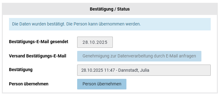 Klicken Sie jetzt auf den Knopf Person übernehmen.