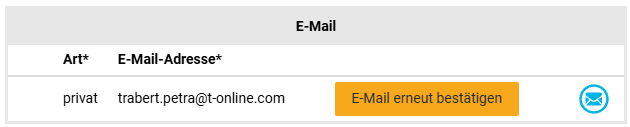 Hinweis: Prüfen Sie in jedem Fall die Schreibweise der E-Mail, bevor Sie erneut eine Bestätigung erbitten.