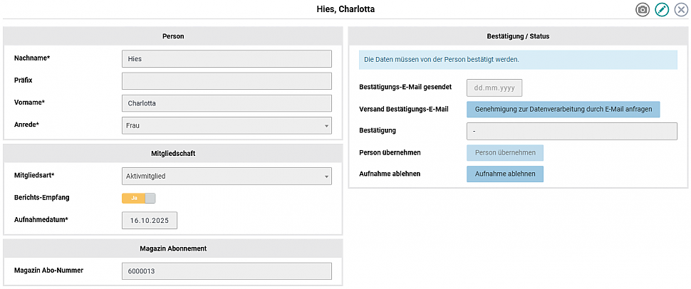 Hinweis: Die Datenhoheit wird automatisch übertragen. Bei Aktivmitgliedern wird die Rolle Mitglied automatisch eingetragen.