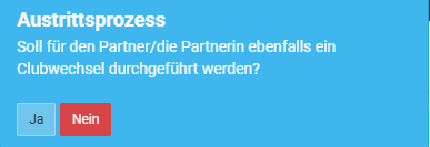 Ist eine Partnerschaft eingetragen, wir das Programm Ihnen einen Hinweis geben und die Frage stellen, ob für den Partner auch ein Clubwechsel ansteht? Beantworten Sie das mit Ja, dann wird der Clubwechsel auch für den Partner eingeleitet.